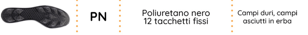 - PN : Poliuretano nero 12 tacchetti fissi , per campi duri e campi asciutti in erba
