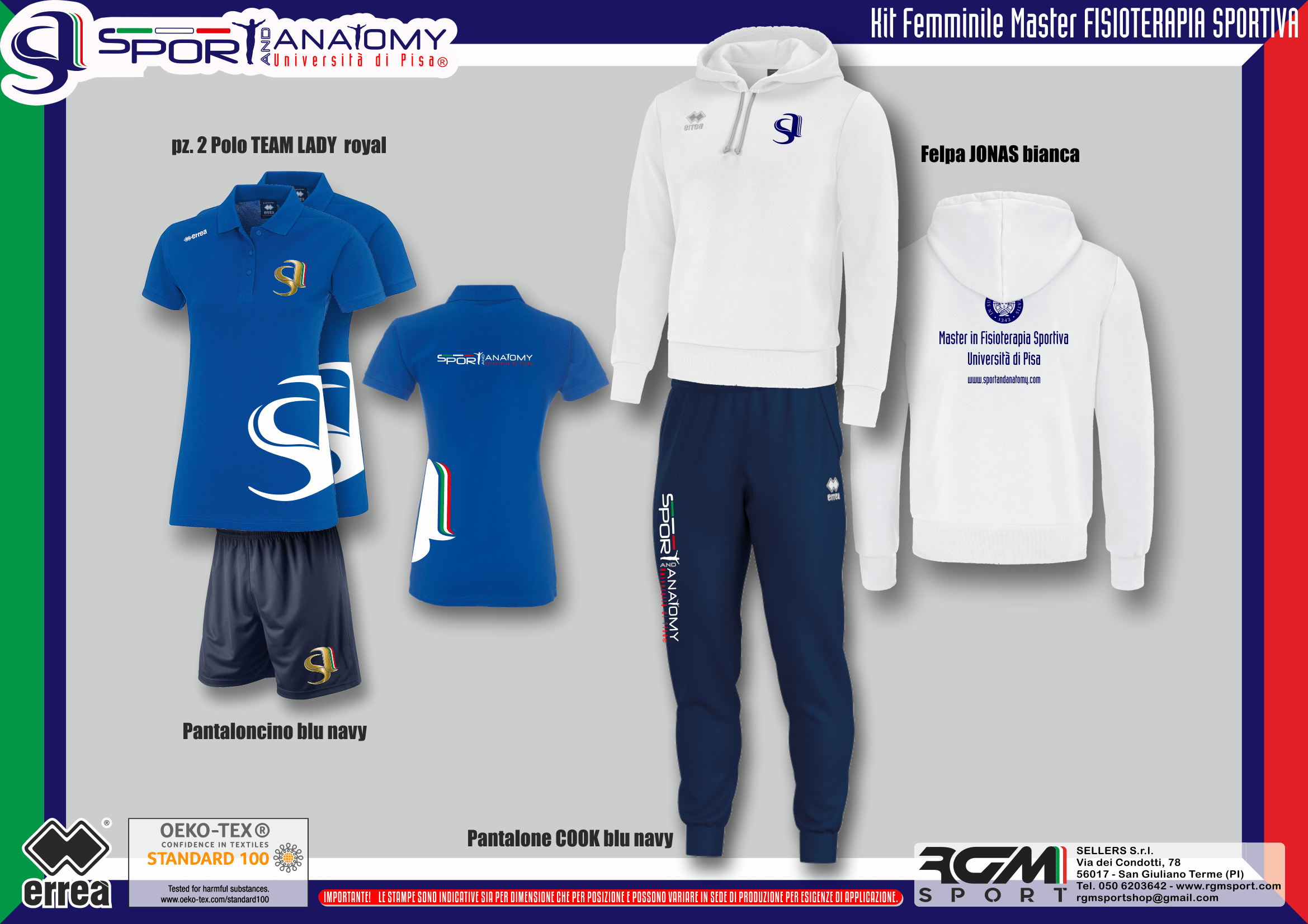 Kit Femminile Completo Errea Master in Fisioterapia Sportiva composto da: