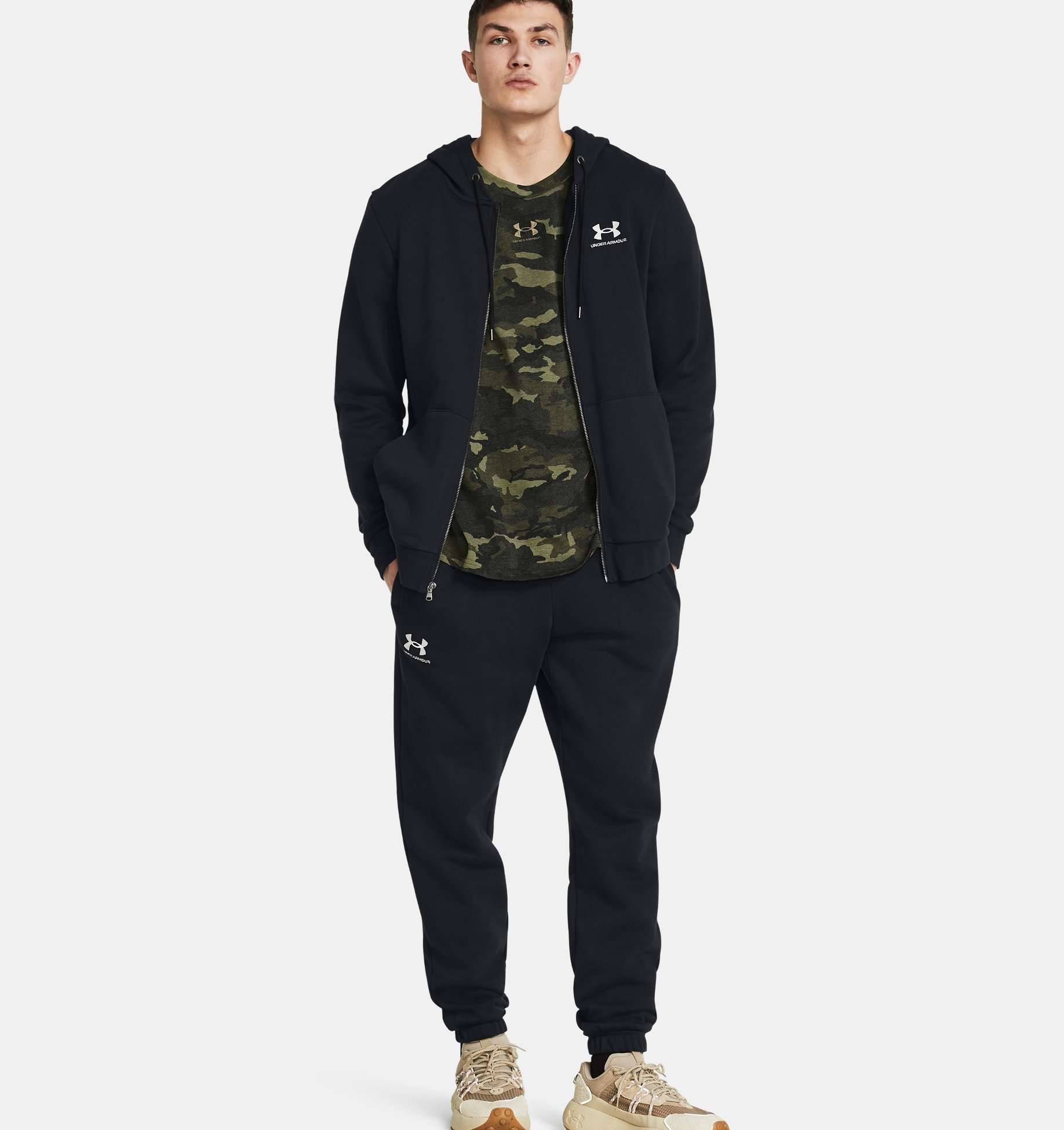 - Tasche per le mani aperte e tasca posteriore con chiusura a pressione